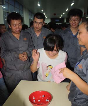 2014年9元5日,東亞公司在公司內(nèi)部舉行了熱火朝天的博餅活動(dòng)。先是分桌進(jìn)行博餅,每桌博出來的狀元再進(jìn)行下一輪的博餅。活動(dòng)的獎(jiǎng)品不但有各種生活用品,甚至還有手機(jī)等大獎(jiǎng)。將近21點(diǎn),博餅活動(dòng)才結(jié)束。